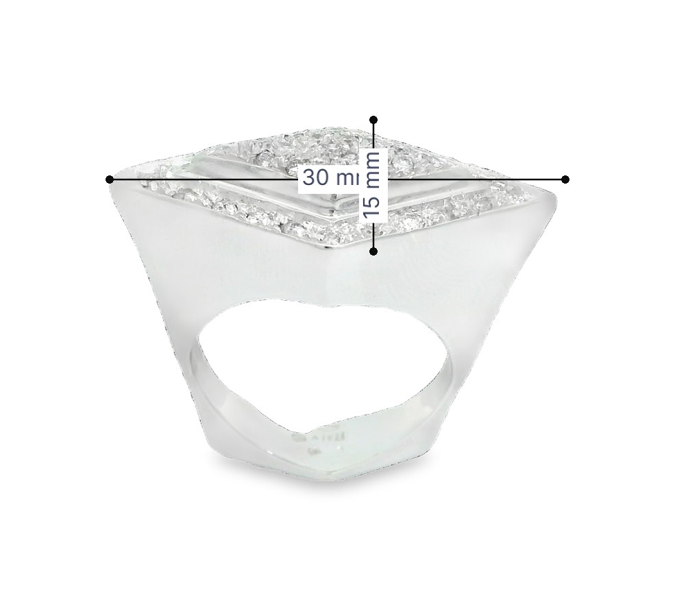 Ca. 0,4 Karat Brillanten gefasst in 750er Weißgold, dazu ein wahrhaft außergewöhnliches, massives Design in edler Verarbeitung – so wird dieser Vintage Ring zu einem richtigen Eyecatcher! Sie werden überrascht sein, wie angenehm der Ring zu tragen ist trotz der ungewöhnlichen Ringschiene. Wenn Sie also extravagante Stücke lieben, sollten Sie diesen Ring im Kopf behalten. Ringweite 52,5