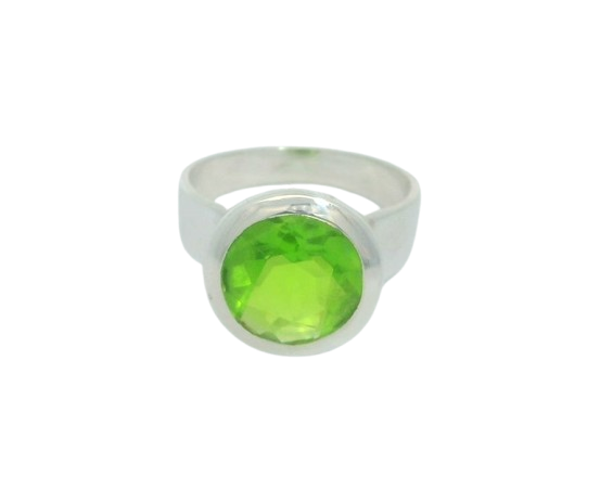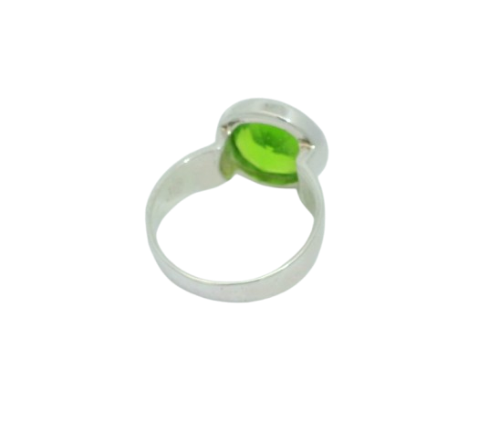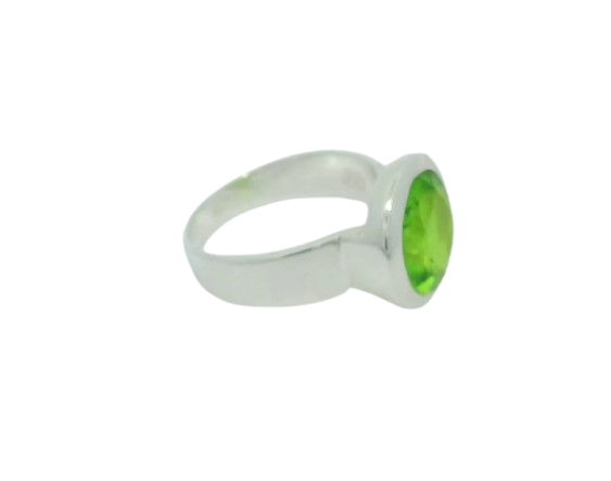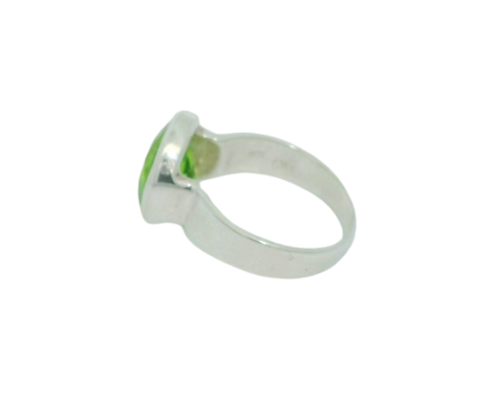 Solitaire Ring aus Silber mit froschgrünem Peridot