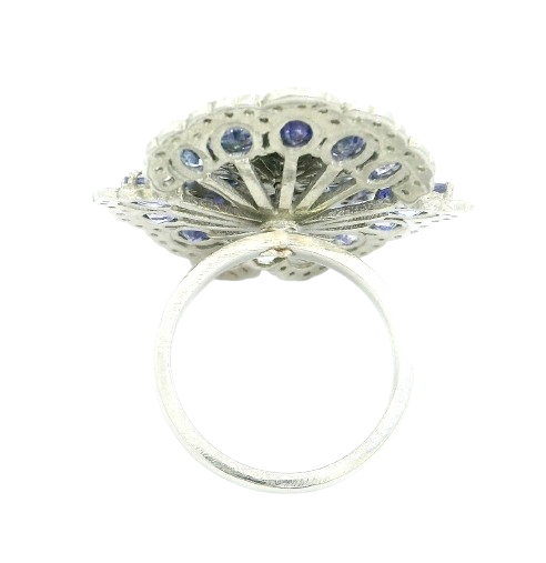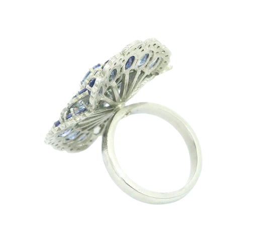 …macht diesen Ring so besonders! Die geschwungene Form erinnert an eine wunderschöne, exotische Blüte – aus meiner Sicht zwar kein Ring für den Alltag, dafür macht es aber umso mehr Spaß, damit zu besonderen Anlässen die Blicke auf sich zu ziehen. Aus Silber, Ringweite 53,5