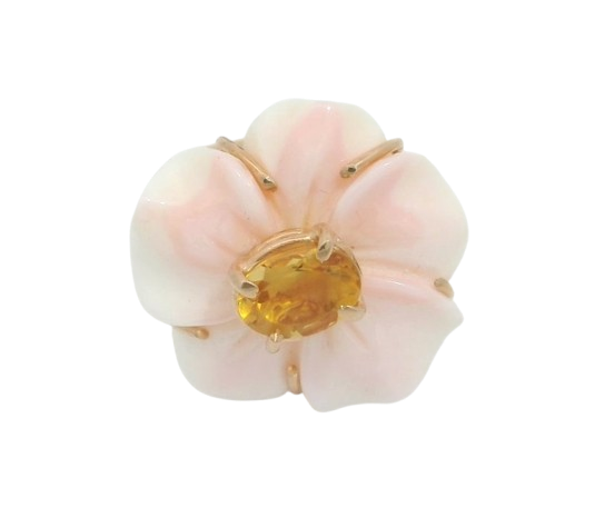 Verspielt – Blütenring mit rosa Muschel und Citrin